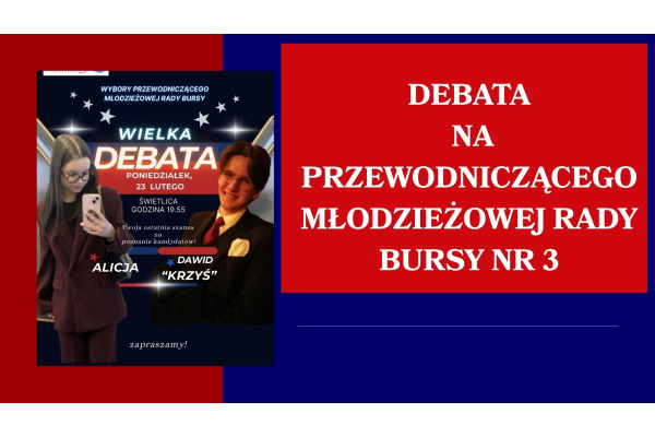 Naprzeciw siebie stanęli Dawid i Alicja. Tematyka debaty skupiała się na potrzebach młodzieży, organizacji czasu wolnego. Debata była pełna energii, a kandydaci po autoprezentacji i wzajemnych pytaniach do siebie odpowiadali również na pytania licznie zgromadzonych mieszkańców.